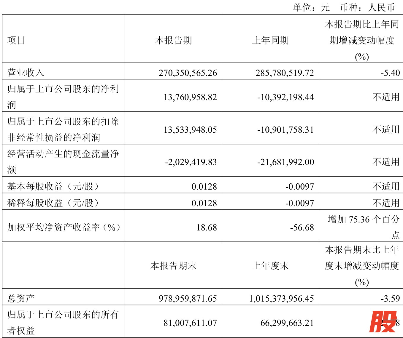 中证智能财讯中毅达(600610)4月26日披露2025年第一季度报告。公司实现营业总收入2.7亿元,同比下降5.40%;归母净利润1376.1万元,同比扭亏;扣非净利润1353.39万元,同比扭亏;经营活动产生的现金流量净额为-202.94万元,上年同期为-2168.2万元;报告期内,中毅达基本每股收益为0.0128元,加权平均净资产收益率为18.68%。