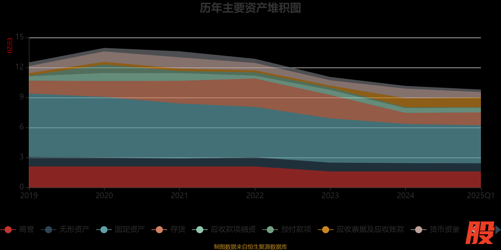 资产重大变化方面,截至2025年一季度末,公司货币资金较上年末减少44.18%,占公司总资产比重下降3.96个百分点;存货较上年末增加18.14%,占公司总资产比重上升2.43个百分点;应收票据及应收账款较上年末增加9.4%,占公司总资产比重上升1.2个百分点;商誉较上年末没有变化,占公司总资产比重上升0.59个百分点。