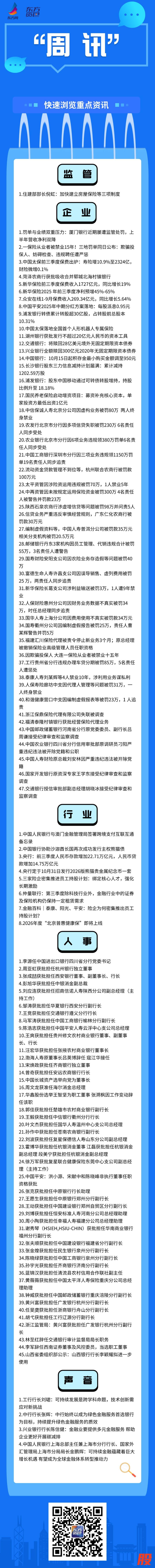 大福证券 一周合辑丨厦门银行连收大额罚单;中国太保公布1-9月保费收入