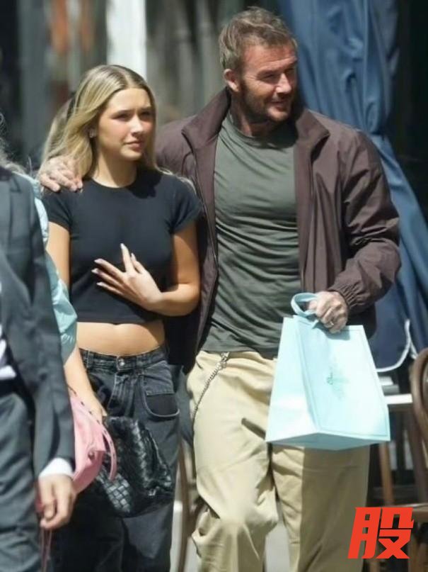 15岁的小七身高和老贝就差半个头了,T恤明显就是卡戴珊家族风格,露出的一截肚子没有健身痕迹胜在青春白嫩,老贝还是亲昵的挽着女儿的肩膀,时刻做保镖。